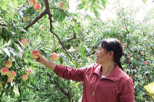 游客正在采摘桃子。