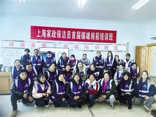 上海家政保洁员首届镇雄岗前培训班顺利结业,全体学员合影留念。