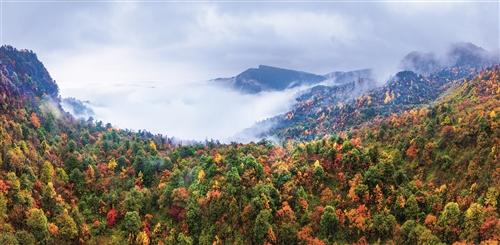 清晨的薄雾与多彩的山林相映成趣。通讯员 赵 昱 摄
