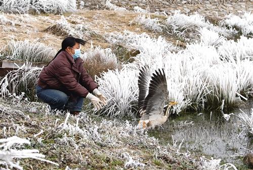 近日,一只迁徙途中受伤落单的斑头雁,在云南大山包黑颈鹤国家级自然保护区工作人员与当地群众的合力救助下,成功重返蓝天。