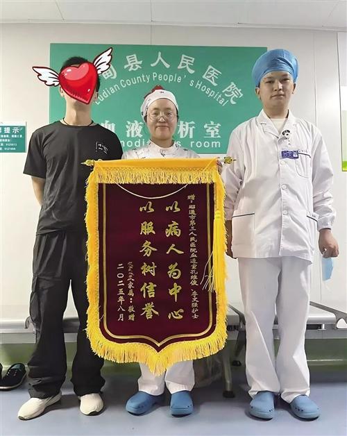 患者给医务人员送锦旗。