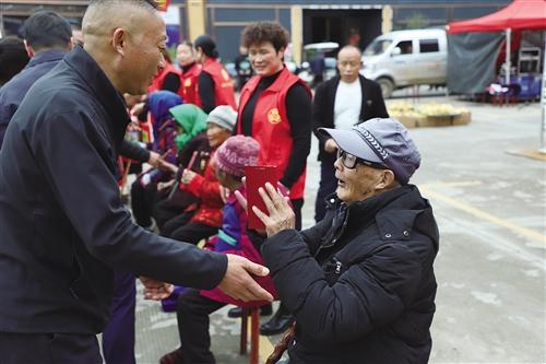 爱心企业代表为80周岁以上老年人发放慰问金。