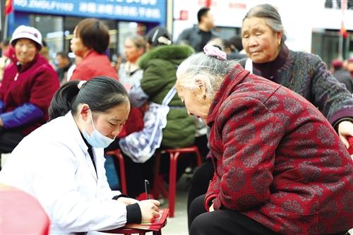 医务人员登记老年人健康信息。