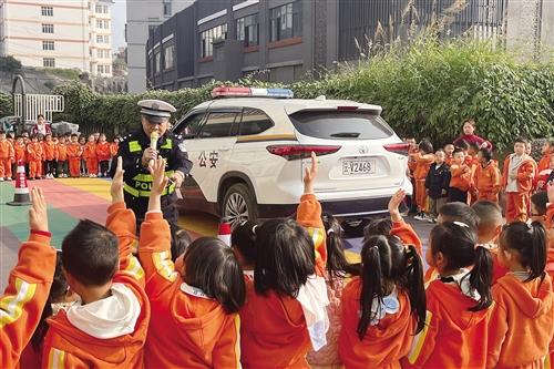 文明交通,礼行天下。近日,永善县公安局交通管理大队组织交警走进辖区幼儿园,通过开展“一盔一带”宣传、汽车盲区体验互动等活动,为师生上了一堂生动的交通安全课。 通讯员 龙喜学 摄