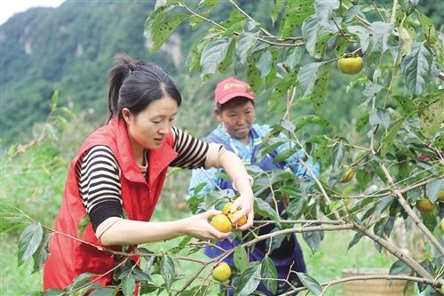 党员志愿者帮助村民采摘甜柿。通讯员 曹馨心 摄
