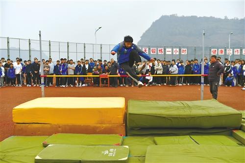 近日,水富市第二中学第二届运动会开幕。全校39个班级、2030余名师生共赴这场以青春为名的体育盛会。本届运动会为期3天,竞赛项目设置有跑步、急行跳远、跳高等单人项目,以及跳绳、接力跑等集体项目。 通讯员 谭兴华 刘 伟 摄