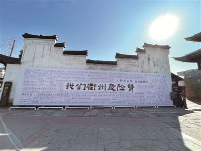 位于市区钟楼底的这面“我们衢州危险赞”墙