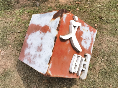 4月5日,南区市民健身公园一处“有礼衢州”宣传雕塑褪色严重,油漆掉落