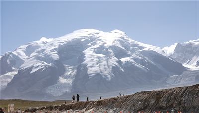 眼下,位于帕米尔高原东麓的新疆塔什库尔干塔吉克自治县迎来旅游旺季。来自五湖四海的游人纷纷登上高原,体验高原特色景观与文化,做一回“冰山上的来客”。图为8月3日,游客在新疆塔什库尔干塔吉克自治县慕士塔格冰川公园游玩。 新华社发