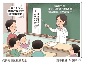 第11个全国近视防控宣传教育月主题推进活动9月8日在山东烟台举行。本次活动以“保护儿童远视储备量,预防和减少近视发生”为主题,聚焦保护儿童远视储备量,进一步推动幼儿园和中小学校抓早抓小,从源头上预防和减少近视发生。 新华社