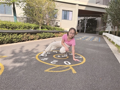 校园是每位同学的家,郭明琪始终用行动表达对集体的热爱。每年学校举行“红领巾提案”活动,她总是最积极的那一个。三年级时,她注意到学校吉祥物“小橙子”和同学们的互动不多,就大胆提议:让小橙子真正“走”进大家的校园生活!建议通过后,她动手设计了一款好玩的地面游戏——“橙法口诀”,将“小橙子”的形象与游戏结合,如今就画在教学楼下的空地上,成了同学们最喜爱的课间游戏之一。