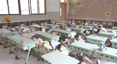 本报讯 (通讯员 郑晨 姜翔 郑门营 陈聪儿 文/摄) “孩子说现在中午能在学校躺平睡觉,下午上课精神头足多了,我们家长特别欣慰!”9月11日,柯城区鹿鸣小学教育集团百家坊学校一位学生家长告诉笔者。自9月新学期以来,柯城区多所中小学开启了“午休躺平睡”。