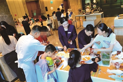 11时,活动告一段落,儿童们转场至衢州希尔顿逸林酒店,开启“与‘爱’同行”环节。盆栽奶茶制作让儿童们跃跃欲试,一杯杯创意饮品新鲜出炉。轻松的游戏、香甜的美食,让儿童们在欢笑中加深了友谊。