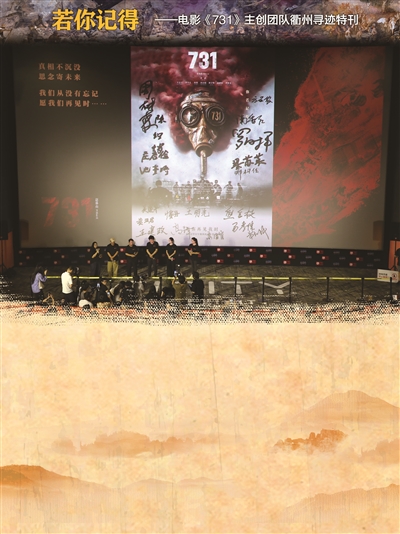 9月20日21时许,电影《731》主创团队走进市区吾悦广场星轶影城与观众见面交流。这是电影《731》主创团队衢州寻迹活动的最后一站,电影《731》历史顾问、来自哈尔滨的侵华日军第七三一部队罪证陈列馆馆长金成民深有感触地对观众说:“电影《731》讲述的是发生在侵华日军第七三一部队本部人体实验中心的真实历史,但细菌战的危害还遍布南方的衢州、常德、宁波、义乌、丽水等许多地区,许多幸存者饱受了几十年的伤痛。如果要拍下一部片子,片名就叫《衢州》……”