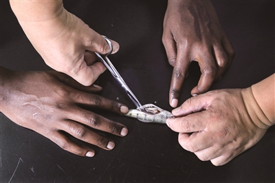 近日,在浙江龙游溪流性鱼类繁养共富创业基地的实验室里,基地负责人、浙江海洋大学的校外硕士研究生导师翁旭东,正手把手教高丹、奥列斯特两位非洲留学生繁育野生鱼。