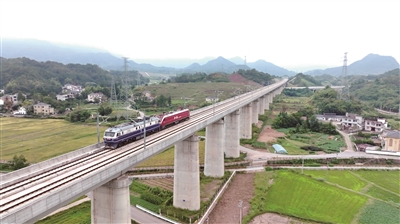 本报讯 (记者 郑丽芬/文 通讯员 陶蕤/摄) 9月23日,杭衢高铁接触网热滑试验列车从衢州站驶出,沿杭衢高铁驶向建德方向。