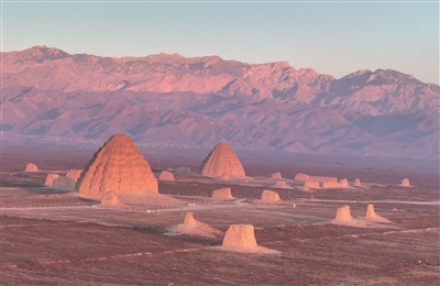 寒冬时节,晨曦中的西夏陵与缤纷霞光及峰峦叠嶂的贺兰山共同形成雄伟壮丽的景观。2025年7月11日,在法国巴黎召开的联合国教科文组织第47届世界遗产大会通过决议,将“西夏陵”列入《世界遗产名录》。图为12月28日清晨拍摄的西夏陵。 新华社发