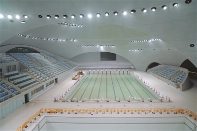 衢州市体育中心“三馆”总建筑面积达16.5万平方米,包括一个10000座甲级大型体育馆,一个2000座乙级中型游泳馆以及一个综合训练馆,外加配套地下室及室外平台。目前,游泳馆的跳水台、训练池和比赛池均已就位,体育馆的场地中央环屏与看台座椅基本安装完毕,综合训练馆也完成了装修装饰工作。在明年举行的浙江省第十八届运动会期间,“三馆”将承办游泳、跳水、篮球、排球、体操等比赛。
