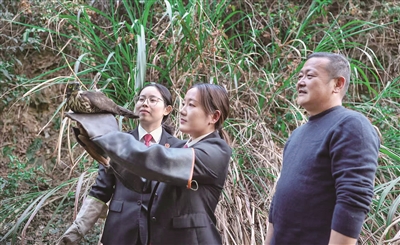 巡护途中的放归环节,成为冬日山林里温暖的一幕。被放归的是凤头鹰和蛇雕,均为国家二级保护野生动物。“这两种动物都是生态系统的‘益鸟’,对维持林区生态平衡有着重要作用。”叶发门说。