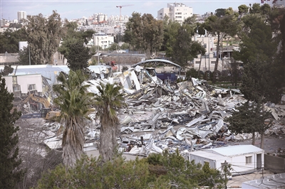 以色列《耶路撒冷邮报》1月20日报道说,以色列当天开始拆除联合国近东巴勒斯坦难民救济和工程处(近东救济工程处)位于东耶路撒冷的办公地。据报道,以色列土地管理局人员当天早上在警方陪同下进入近东救济工程处的办公大院,用工程机械拆毁院内建筑和设施。图为20日,以方拆除位于东耶路撒冷的联合国近东巴勒斯坦难民救济和工程处办公地。
