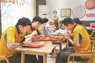 “这个套餐,既缓解了外卖员、快递员等的‘用餐难、用餐贵’问题,还可以盘活社区资源,实现‘一餐惠两头’。同时,食堂还会根据骑手的意见建议,及时地调整口味,争取做到让每一位骑手都暖心暖胃。”李蔚说。