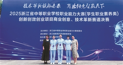 本报讯 日前,2025浙江省中等职业学校职业能力大赛再传捷报,海宁卫生学校《天伦乐》项目团队获创新创效创业项目商业创意赛一等奖,为该项目一年来的努力画上了圆满的句号。