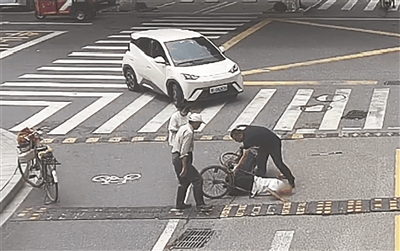 七旬老人骑车摔倒 热心群众一起施援手