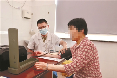 “朱医生,我这几天有点胸闷。”“头晕吗?降压药按时吃了没?”近日早上8点多,记者来到双喜社区卫生服务站全科诊室里,朱名清正一边耐心地询问病人情况,一边熟练地拿起血压计测量。“血压有点高,这几天别喝酒了。”测量完毕,他耐心叮嘱着,还不忘和村民聊聊家常。