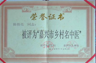 在农村常见病和重症急症治疗中,陈倩亮经验日益丰富,善用中医药治愈众多流感、肺炎、流脑、肝炎、肝硬化腹水等患者。荣誉随之而来:“浙江省基层名中医”“嘉兴市乡村名中医”“优秀基层医务工作者”……