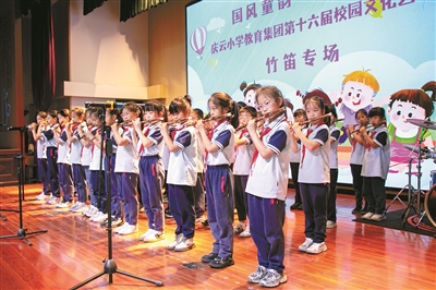 本报讯 日前,庆云小学教育集团以“国风童韵?艺动未来”为主题,开启了为期一个多月的沉浸式艺术文化节。本次艺术节以中华优秀传统文化为核心,通过丰富多彩的艺术实践活动,为2000余名学生搭建了展示才华的舞台。