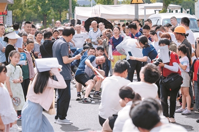 随后,“丁小粟”玉米趣味运动会热闹举行。前期面向全市招募的60组家庭化身为“玉米小达人”,在永胜村的玉米采摘基地和共富玉米馆的广场上,参与一系列围绕玉米设计的妙趣横生的趣味项目。