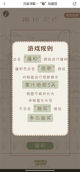 进入游戏后,根据弹出的游戏规则进行操作,秧苗顺利长大后就可以参与抽奖了。祝大家锦鲤附体,好运爆棚。
