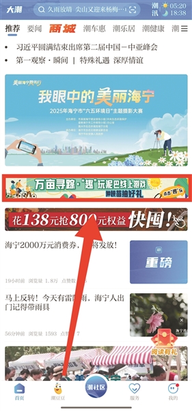 方式二:登录大潮APP进入首页,点击固定栏对应横幅即可进入游戏页面。