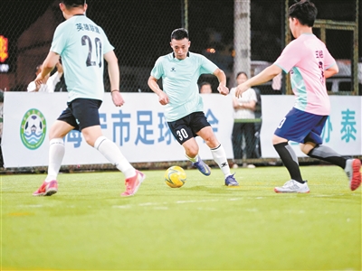 本报讯 继“苏超”(江苏省城市足球联赛)掀起草根足球热潮后,袁花镇也迎来了自己的“村超”。6月18日晚,“村潮·爱拼会赢”——“运动袁花·足够精彩”2025年首届袁花镇“全味杯”“村超”五人制足球联赛在袁花镇文化中心火热开赛。9支队伍,共94名球员齐聚绿茵场,在盛夏之夜点燃全民健身热情。