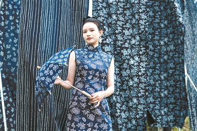近日,在黄湾镇大尖山景区,游客身着非遗特色蓝印花布制成的新中式旗袍,恍若从江南古画中走出的温婉女子。如今,穿着非遗服饰旅拍已成为一种新风尚。