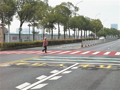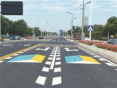 据了解,七处人行横道聚焦辖区内的党群服务中心、图书馆、农贸市场、主要商圈及大型集聚小区等市民日常必经之地。改造内容主要是采用了蓝黄撞色的“巴登堡纹”和红白相间的人行横道,显著提升路口的可视性和辨识度,进一步放大人行横道的安全警示信号。
