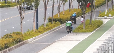 当日中午12点左右,正值午间车流高峰,一名约4岁的女童独自骑着儿童车在马路中央徘徊。女孩身穿白色衣服,神情茫然,身边不时有车流经过,情况十分危险。此时,外卖骑手刘天鹏恰巧途经此处,发现险情后立即停车上前。