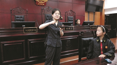 最让孩子们兴奋的是穿上法袍的环节。工作人员详细讲解了法庭的布局和法槌、法袍等物品的象征意义。当孩子们逐一穿上特制的儿童法袍时,原本活泼好动的孩子们立刻安静下来,小心翼翼地整理着衣领,脸上写满了庄严与自豪。“穿上法袍的那一刻,突然觉得肩上有了一种神圣的责任感。”参与体验的刘庆一同学说。通过角色扮演,孩子们对法庭审理流程有了直观的认识。
