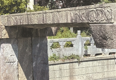这座桥始建年代已难以确切考证。但根据桥上铭刻可知,清嘉庆十七年(1812)壬申年仲冬,周围百姓出资重建了这座桥,让它得以在岁月中延续。桥柱由三块条石竖列而成,其上刻有莲纹,寓意吉祥美好;桥横梁头呈圆弧形,线条流畅自然;桥面由两块石板拼成,简约而质朴。桥额阴地珠圈内阳刻“重建晓临桥”,西侧阴刻“众姓里人公助”,两侧均有卷草纹装饰。这些文字与纹饰,仿佛在诉说着当年重建时的故事。