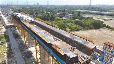 杭州机场高铁海宁段“火热”推进。