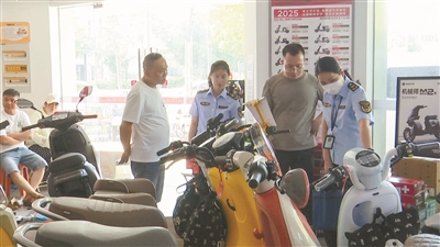 近日,记者跟随执法人员来到市区碧云北路电动自行车销售集中区域。在一家品牌电动自行车专卖店内,执法人员对在售车辆进行突击检查,通过仔细对比其产品合格证与实物,检查车辆是否存在非法改装行为。