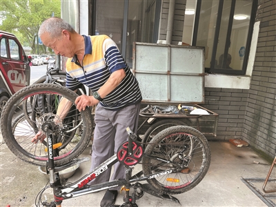 瘦削的身影、布满老茧的双手、永远挂在脸上的微笑——这是沈建民的标志。1978年,18岁的他握起扳手,从此与车轮结缘。退休后,他在社区老年活动室旁支起小摊……车摊一摆就是几十年。摊位几经搬迁,初心从未更改:“现在骑老式自行车的人少了,但老人、残疾人更需要帮忙,修他们的车,我一分不收!”