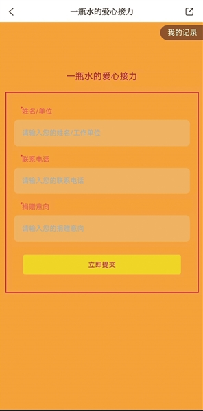 进入捐赠页面后依次填写表单,最后点击“立即提交”,之后会有工作人员前来对接。