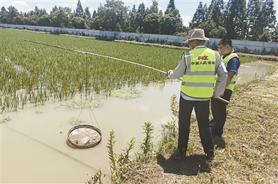 为降低恶劣天气给种养殖户带来的农业生产损失,近日,人保财险海宁支公司农险业务部携农业专家一行不惧高温“烤”验,为地方的稻虾共作养殖场开展了防灾减灾巡查服务。