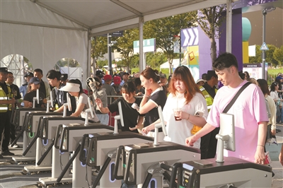 演出开始前,检票口处,志愿者们有条不紊地疏导人流,观众们自觉排队、有序入场。记者观察到,不少乐迷选择公交出行,骑行共享单车的观众将车辆整齐停放在指定区域,低碳环保的出行方式成为现场一道亮丽的风景线。