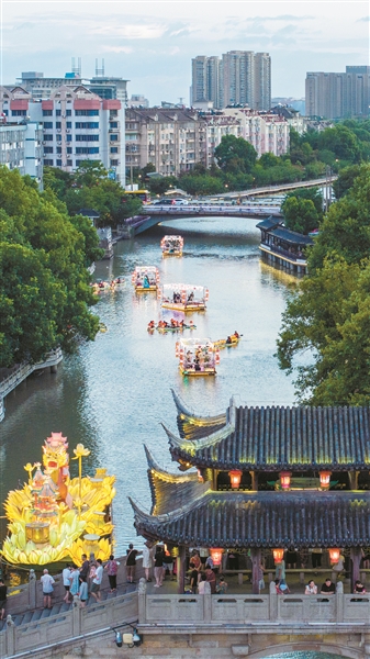 7月20日晚,一场水上迎灯活动在洛塘河上璀璨上演。灯影、花影、人影交织,给正在岸边纳凉的市民们带来一幅流动的风景画。 ■大潮拍客 石月平 摄
