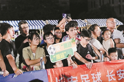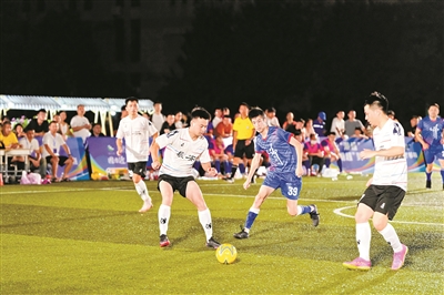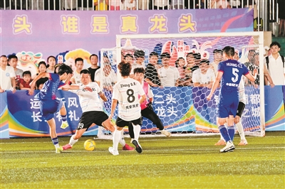 当晚,首场比赛由长安高新队对阵许村纺城织影队。球员们在球场上奔跑,白色与蓝色球服在夜色中相互较劲,相互比拼;观众们围满了球场四周,全力助威呐喊。最终,长安高新队2:1战胜纺城织影队。