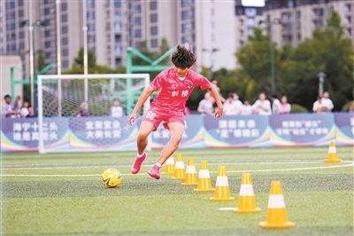 18时30分,暖场环节率先开场,12个镇街的高手轮番挑战障碍射门,钻障碍、带球、射门一气呵成。19时,开幕式正式开始,15支队伍方阵整齐入场,运动员举着各自街镇的特色吉祥物,让人过目不忘。