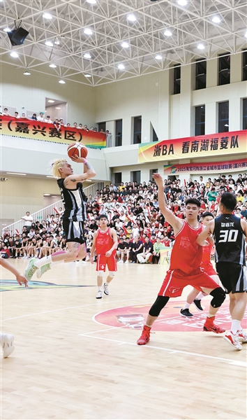 本报讯 7月23日晚,“浙BA”嘉兴赛区比赛继续火热上演。海宁队迎来第六场比赛,客场对阵南湖队。在前五场比赛中,海宁队和南湖队均是四胜战绩,这场关乎荣誉和排名的关键赛事吸引了众多球迷到场助威。