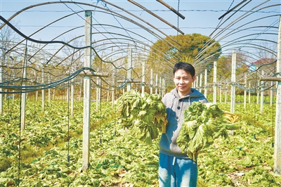 俞骁在采摘瘤芥菜。